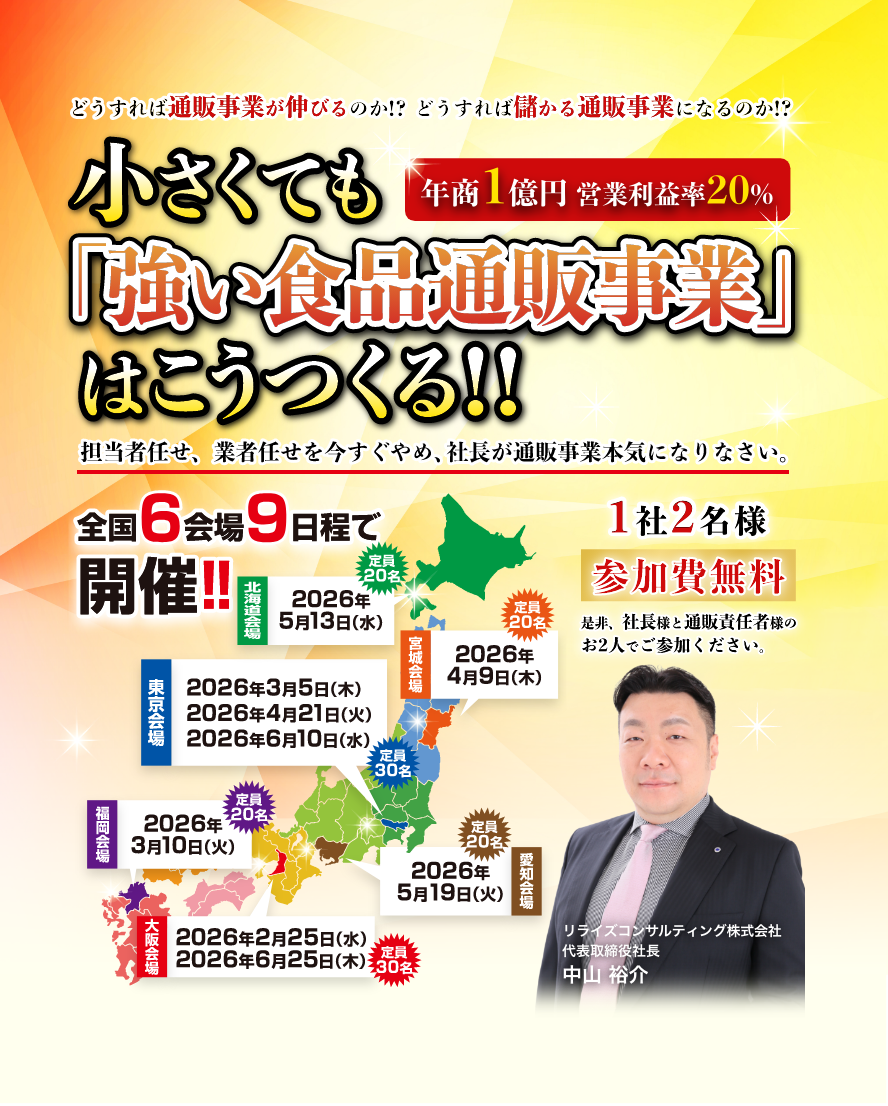 正しい「売り物」「売り方」「売り手」を実践すれば、あなたの食品通販事業も主力事業として大きく成長します。