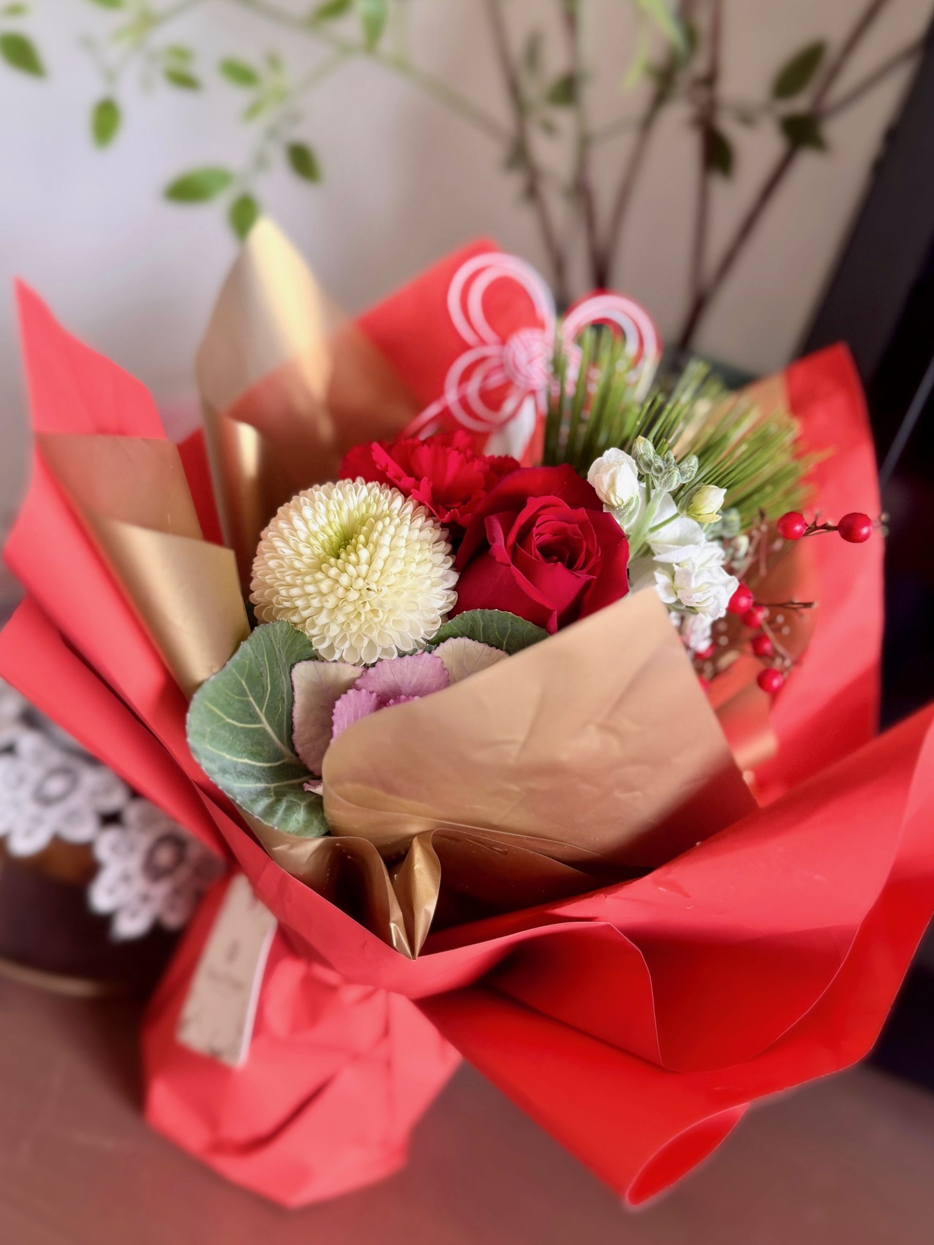 皆さま。 明けましておめでとうございます。 昨年は、大変お世話になりありがとうございました。 年の瀬に、仲良くしていただいている憧れの女性から年賀のお花をいただきました。 葉牡丹、南天とお…